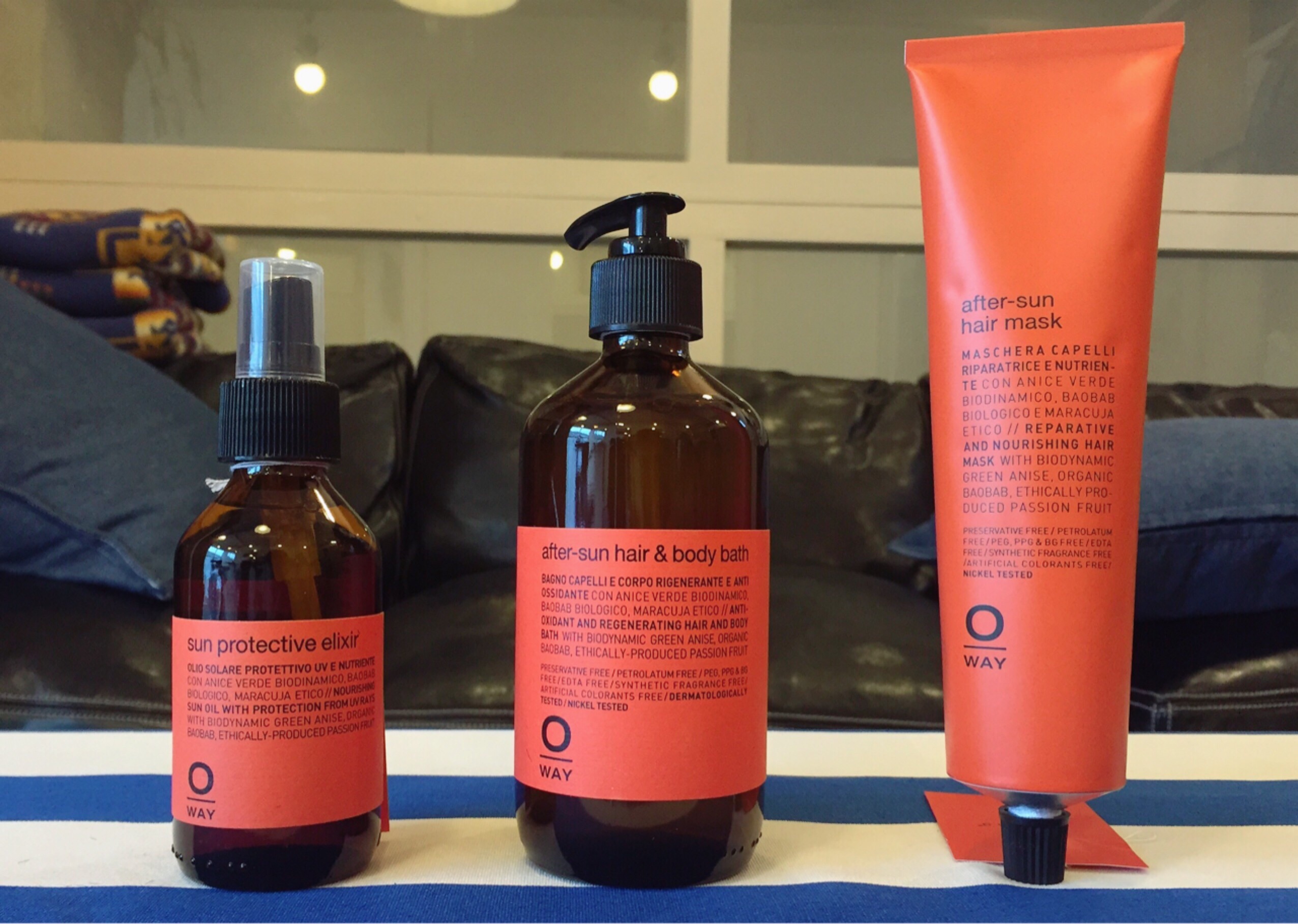 こちらは紫外線を浴びた髪(身体も洗えます)を優しくクレンジングして、水分・栄養・抗酸化作用たっぷりのマスクでとにかく保湿。スプレーで天然のフィルターをかけて艶を出しながら紫外線からしっかり髪を守っていくというケア方法。サンケアだけでなくアンチエイジングも期待できる充実の成分がたっぷりのシリーズです。